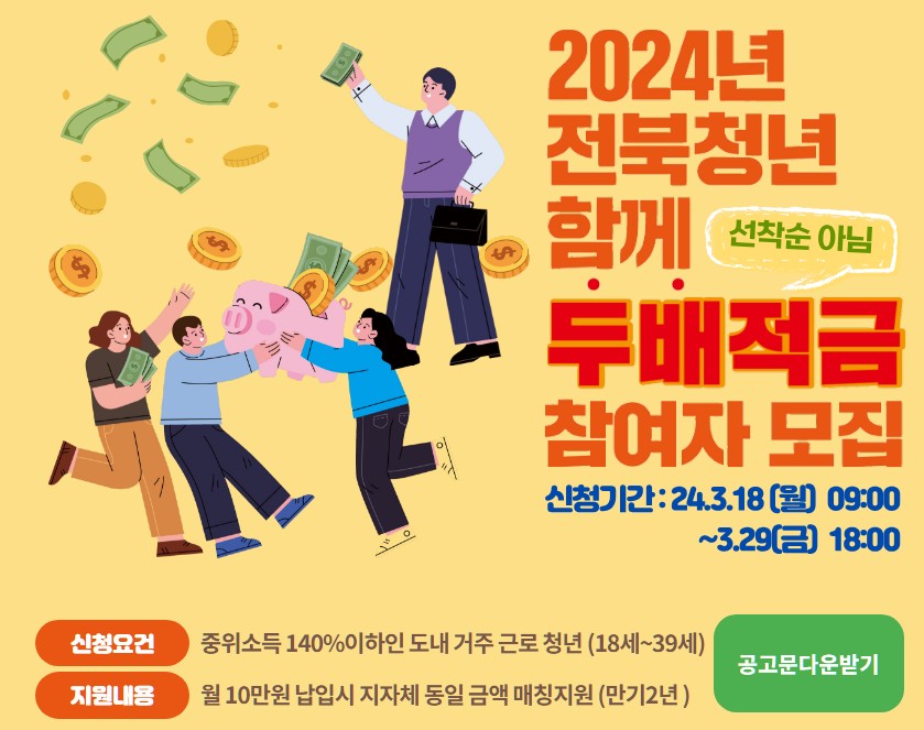 올해 전라북도에서는 자치구 청년들에게 자산을 모을 수 있도록 지원을 아낌없이 쏟아 전북청년두배적금을 출시했습니다